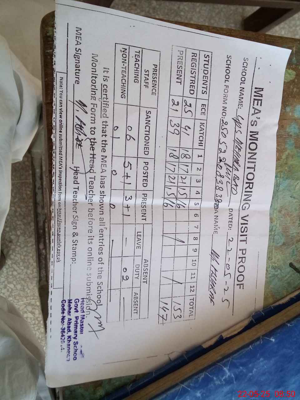 | EMIS Code: 36420147 | Name of School: GPS MEHAR ABAD, KHANEWAL | |||