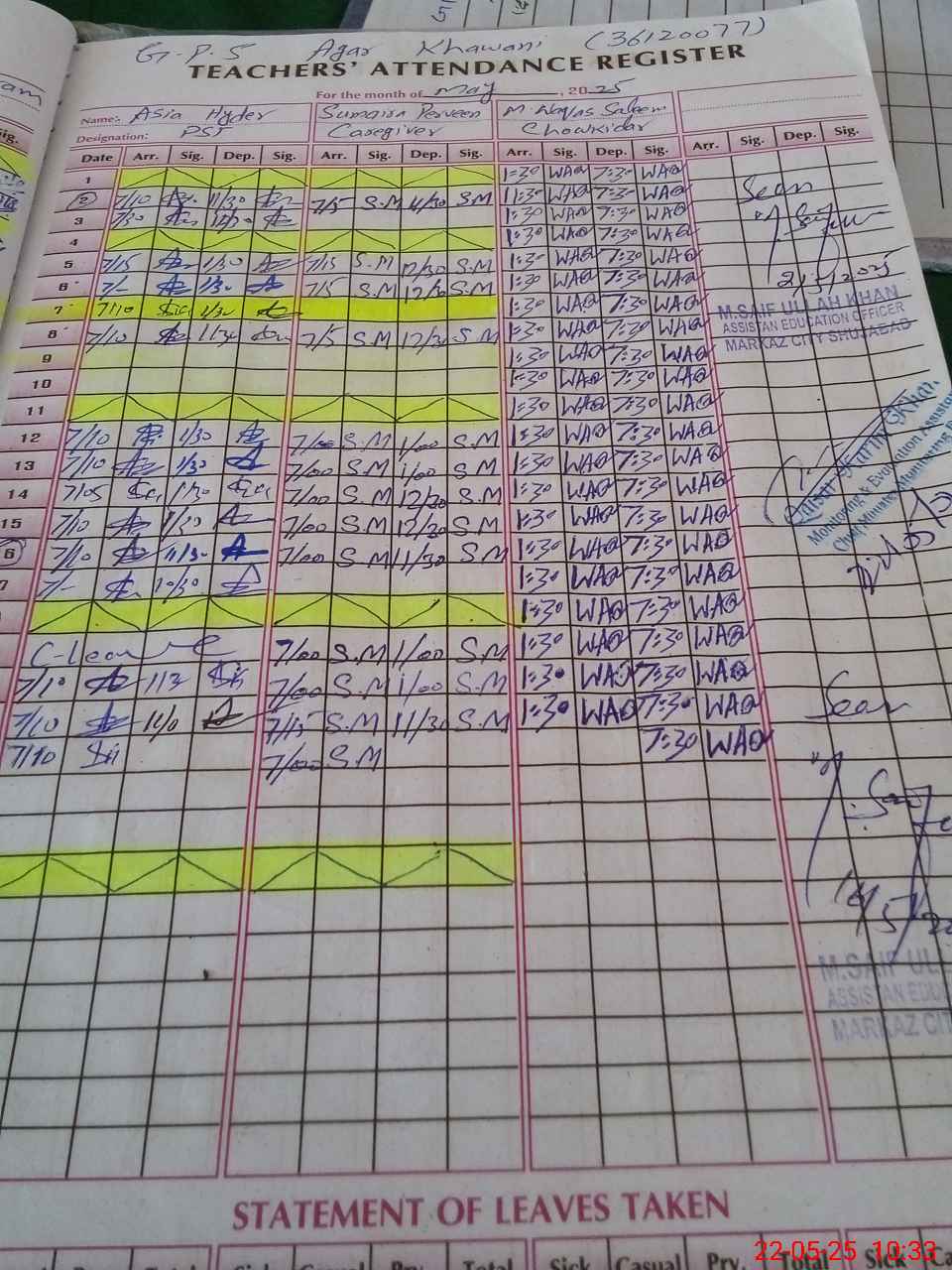 | CNIC | Full Name | Designation | R/C | Absence During Last Calender Month |
