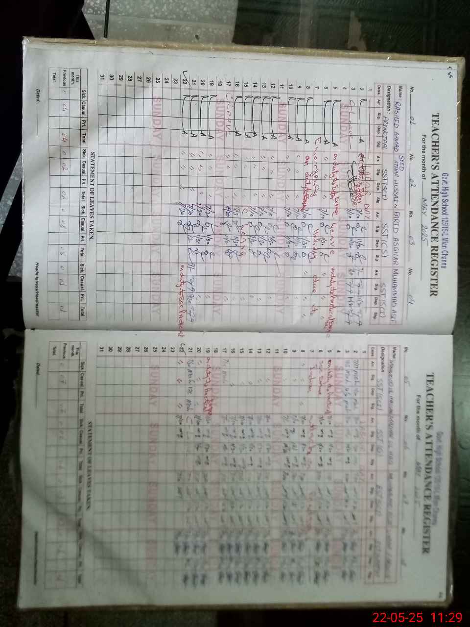 | 36**** | Sy**** At**** Hu**** | SST | Regular | 0 | 0 | 0 | 0 | 0 | 0 | 0 | 0 | 0 | Exam Duty |