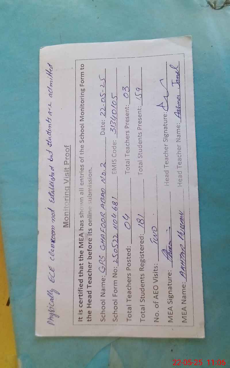 | EMIS Code: 31340105 | Name of School: GPS GHAFOOR A SADIQABAD NO.2 | |||