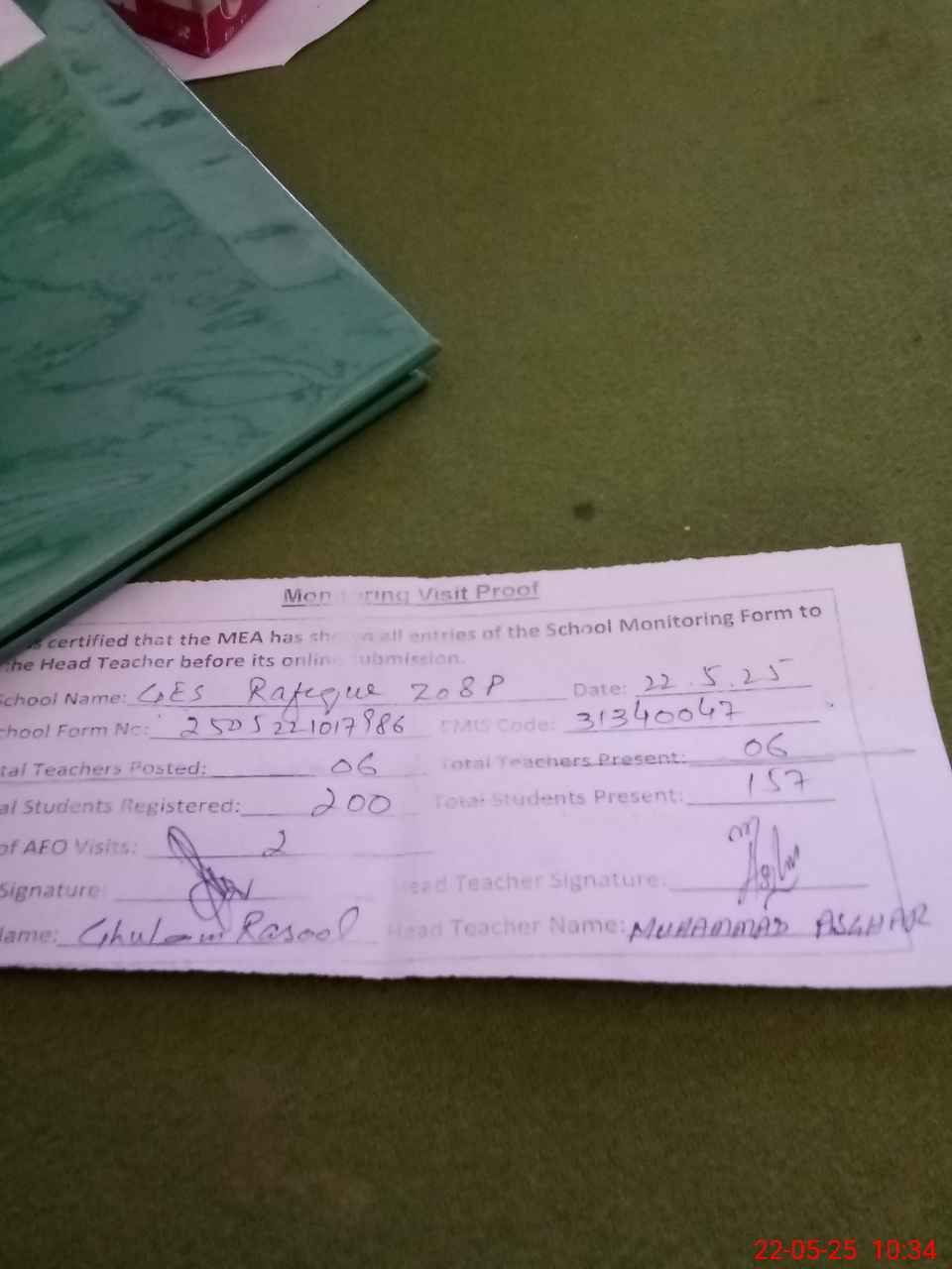 | EMIS Code: 31340047 | Name of School: GES RAFIQ CHAK NO 208/P | |||