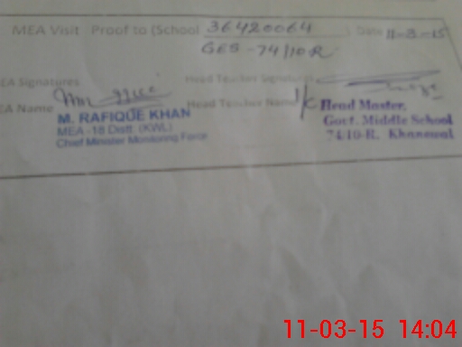| EMIS Code: 36420064 | Name of School: GES 74/10-R, KHANEWAL | |||