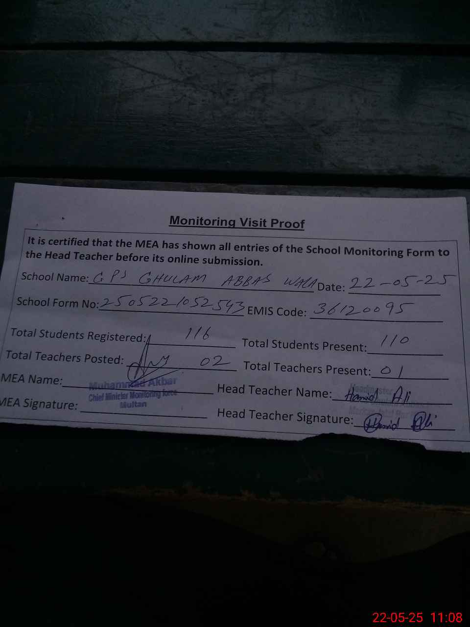 | EMIS Code: 36120095 | Name of School: GPS GHULAM ABAS WALA JALAL PUR KHAKHI TEH.SHUJABAD | |||