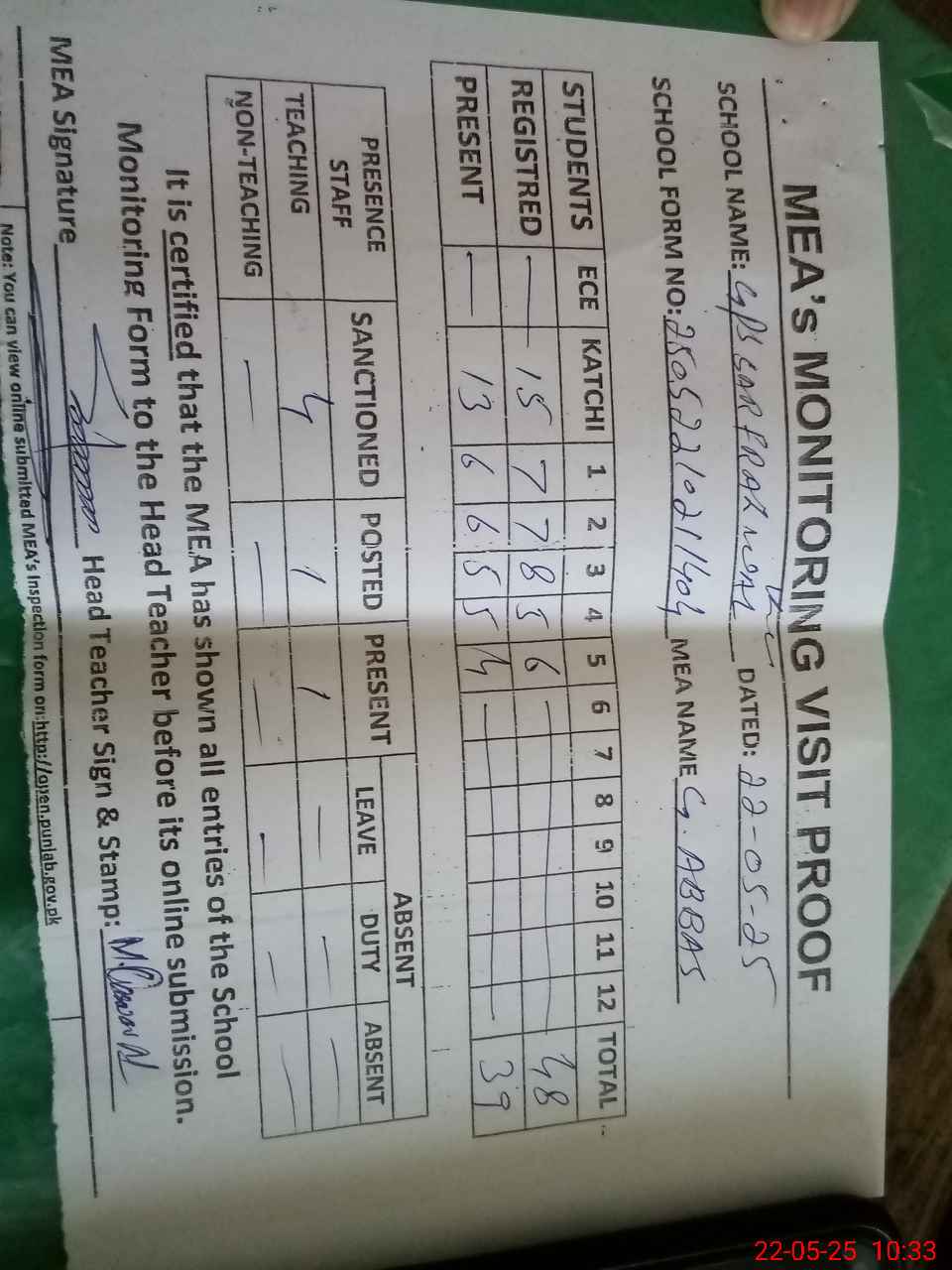 | EMIS Code: 36410309 | Name of School: GPS SARFRAZ PUR, P/O HAJI PUR, NAWAN SHEHR | |||
