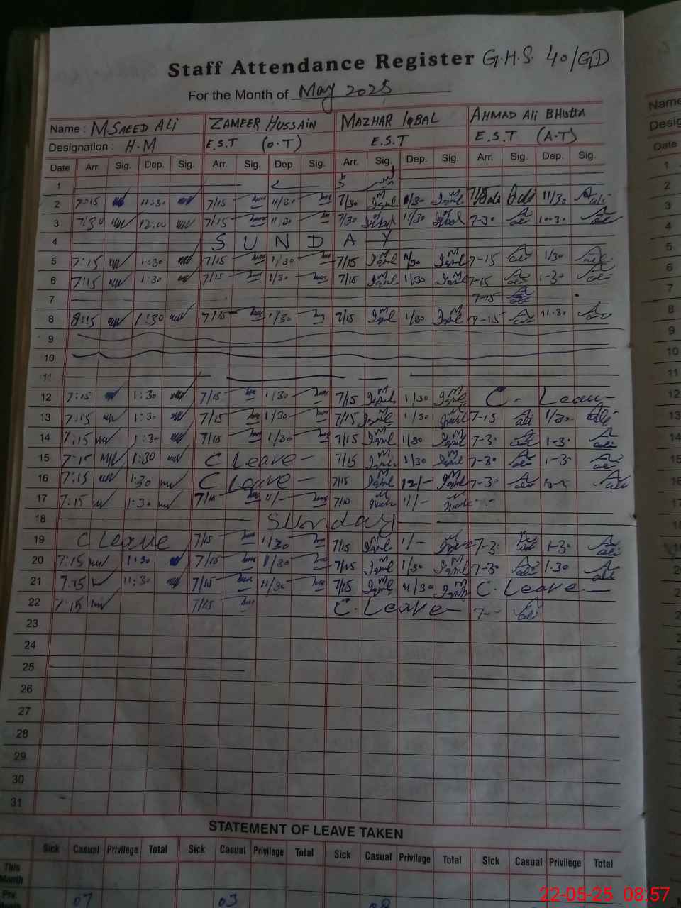 | 35**** | Sh**** Ah**** | 1 | 0 | 13 | 0 | 0 | 0 | 0 | 0 | 0 | 0 | Exam Duty | |