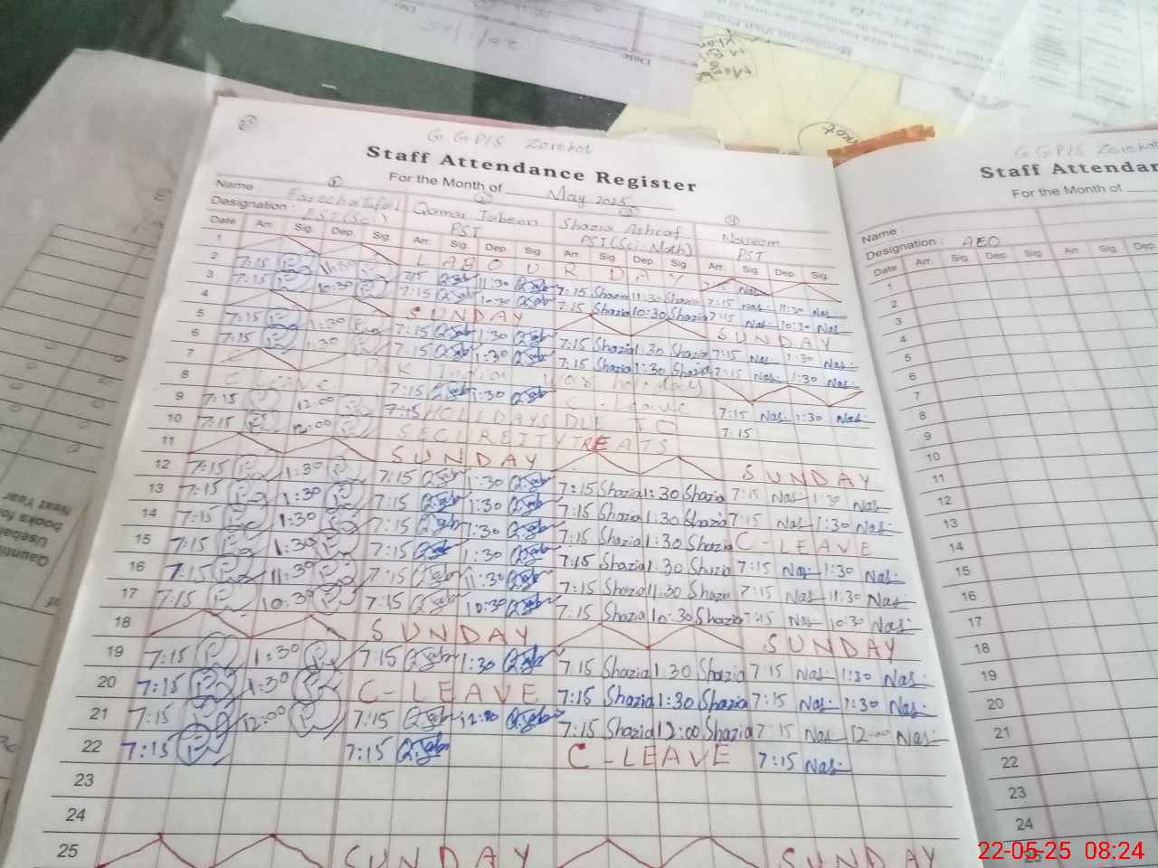 | CNIC | Full Name | Designation | R/C | Absence During Last Calender Month |