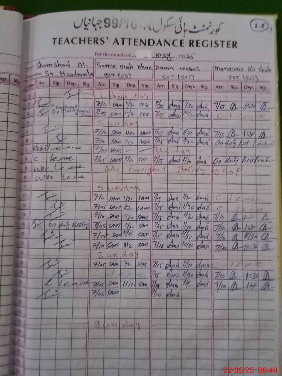 | 36**** | Sy**** Mu**** Al**** Sh**** | SST | Regular | 0 | 0 | 0 | 0 | 0 | 0 | 0 | 0 | 0 | Exam Duty |