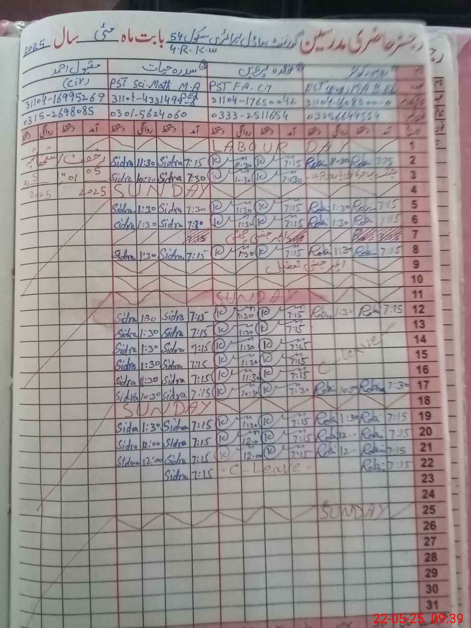 | CNIC | Full Name | Designation | R/C | Absence During Last Calender Month |