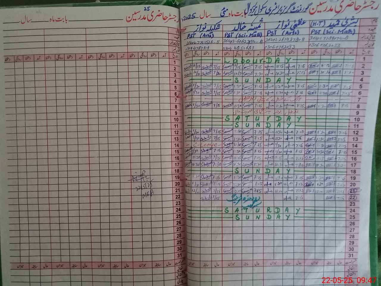 | Name: Uz**** Na**** Designation: (School Headmaster's/Headmistress's) PST Phone/Cell Number: 03**** |