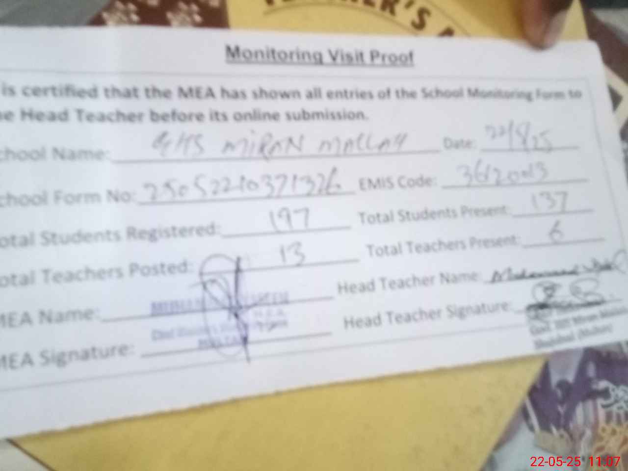 | EMIS Code: 36120013 | Name of School: GHS MIRAN MALLAH SHUJABAD | |||