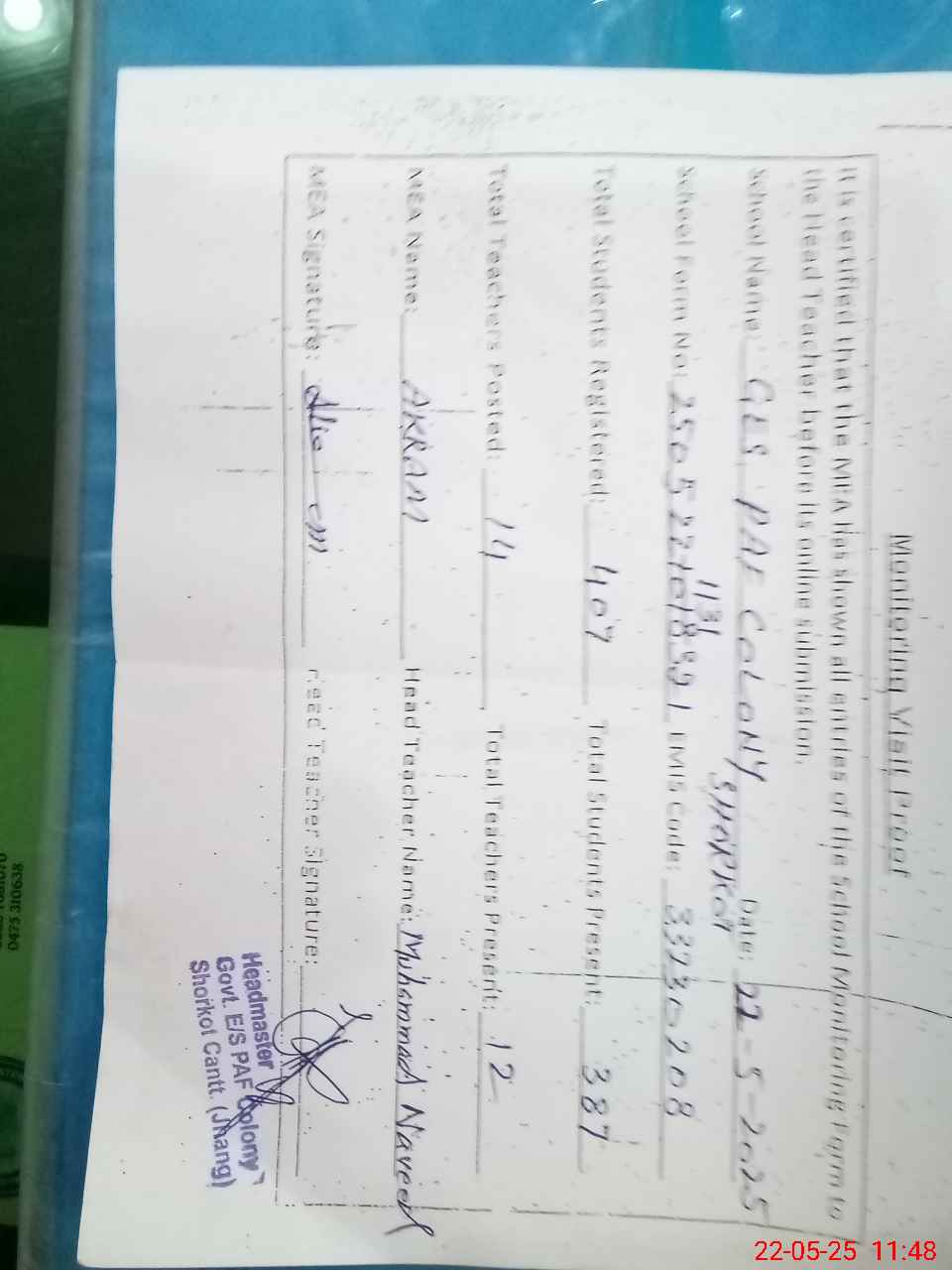 | EMIS Code: 33230208 | Name of School: GES PAF COLONY SHORKOT | |||