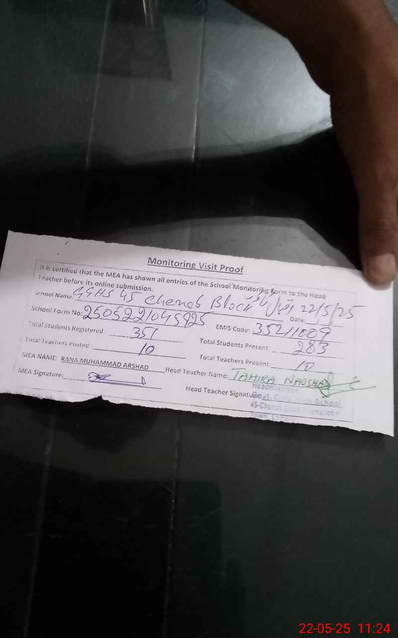 | EMIS Code: 35211009 | Name of School: GGHS 45- CHENAB BLOCK ALLAMA IQBAL TOWN | |||