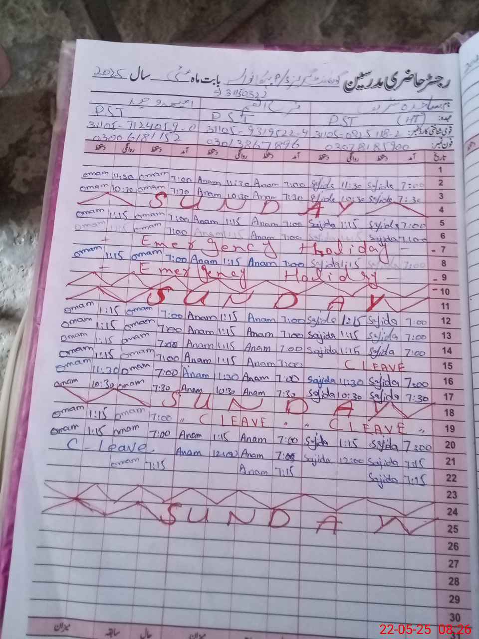 | Name: SA**** SH**** Designation: (School Headmaster's/Headmistress's) PST Phone/Cell Number: 03**** |