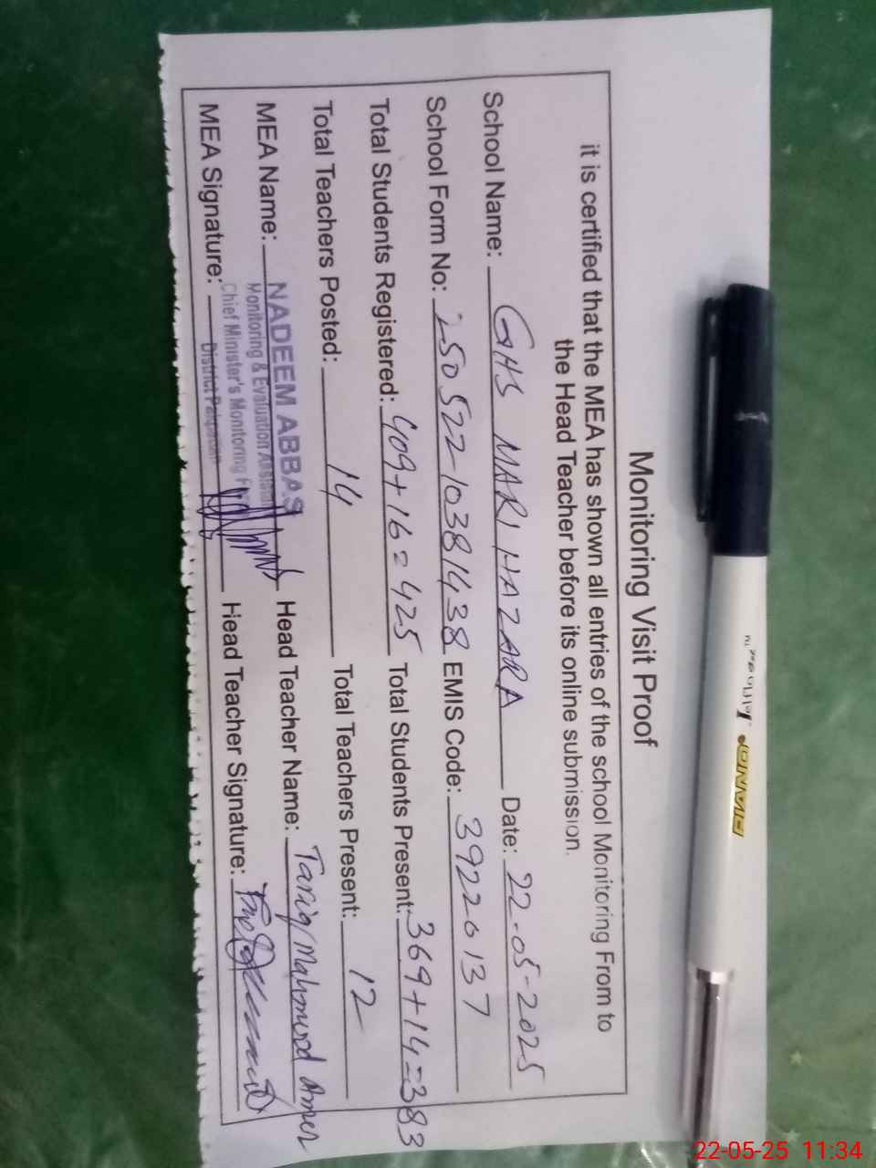 | EMIS Code: 39220137 | Name of School: GHS MARI HAZARA | |||