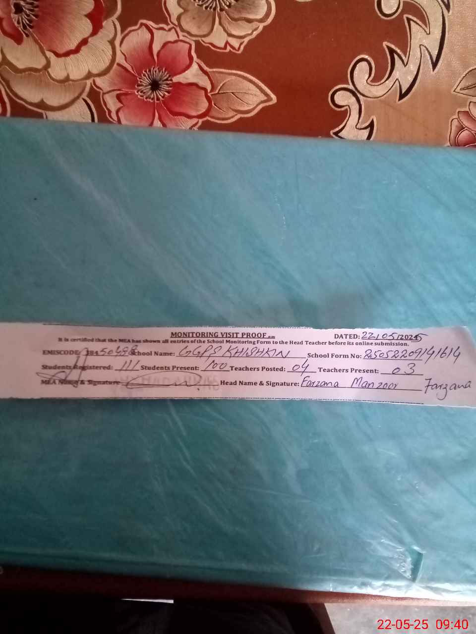 | EMIS Code: 38450488 | Name of School: GGPS KHISHKAN | |||