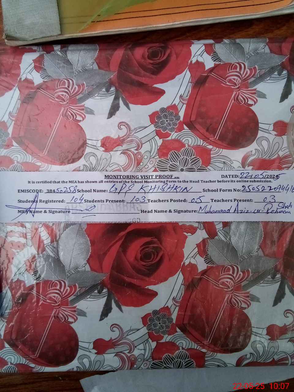| EMIS Code: 38450258 | Name of School: GPS KHISHKAN | |||