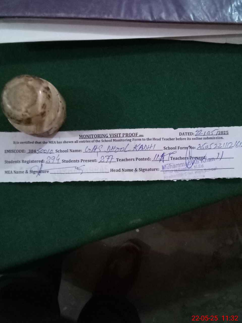 | Certified that this School was Inspected by the Undersigned MEA/DMO Today and the Information Stated Above is as Per Record. | |||||