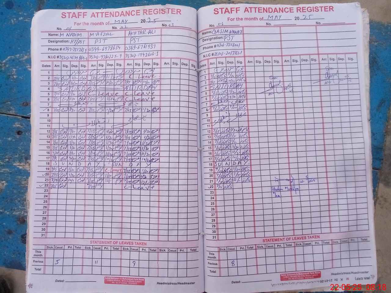| Name: Ak**** Al**** Designation: (School Headmaster's/Headmistress's) PST Phone/Cell Number: 03**** |
