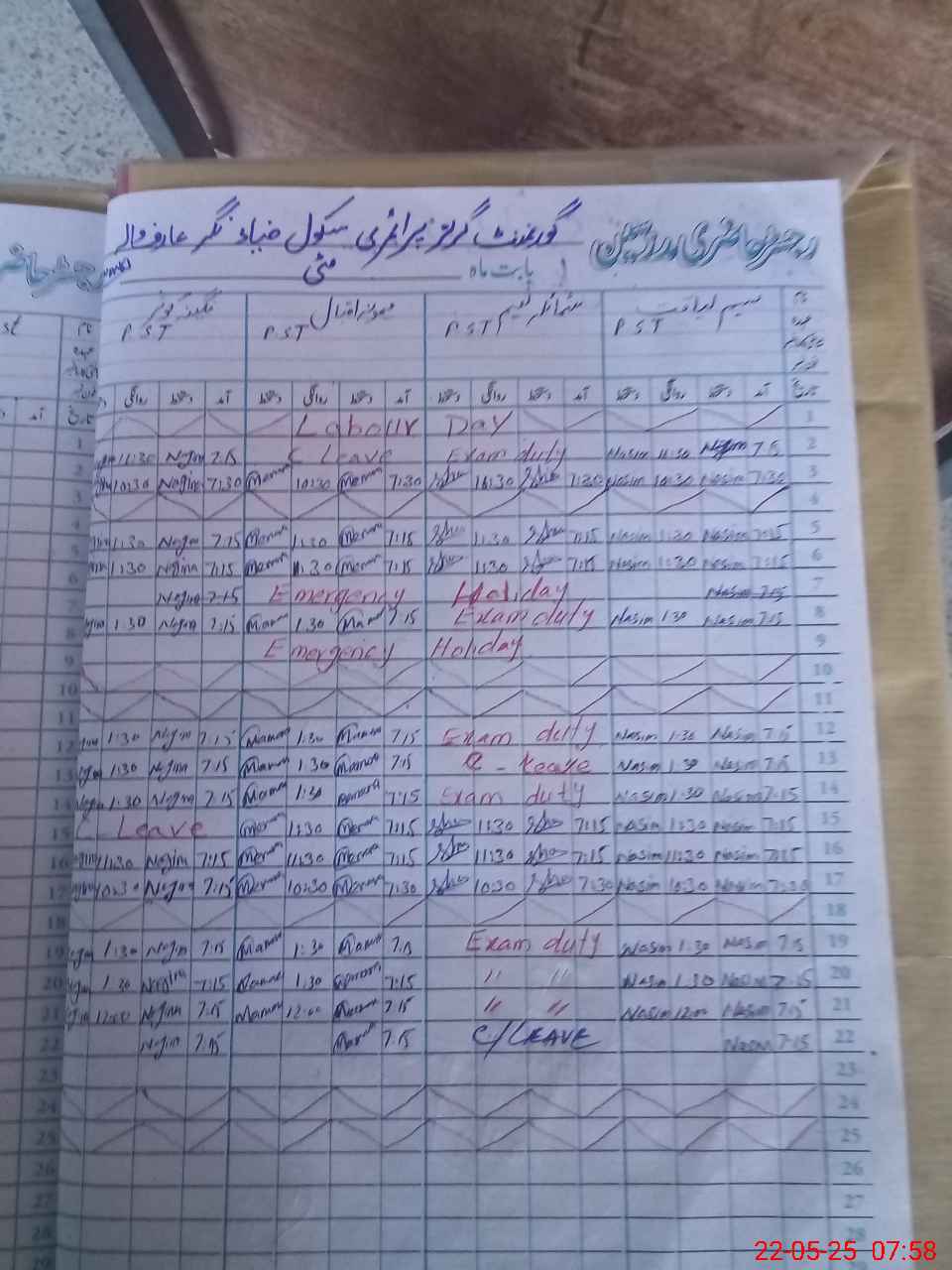 | Leave | Duty | Absent | Maternity | Medical | Ex- Pak |