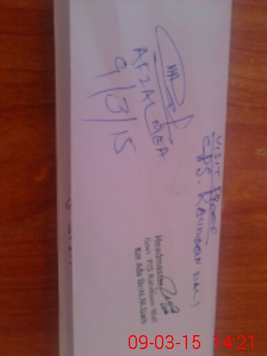 | School Visited by School Health & Nutrition Supervisor (No. of Visits) | 1 | Name1: | Raof | Name2: | N |