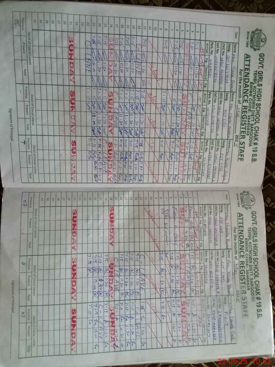 | Name: SA**** BA**** Designation: (School Headmaster's/Headmistress's) SST SCIENCE (HEADMISTRESS) Phone/Cell Number: 03**** |