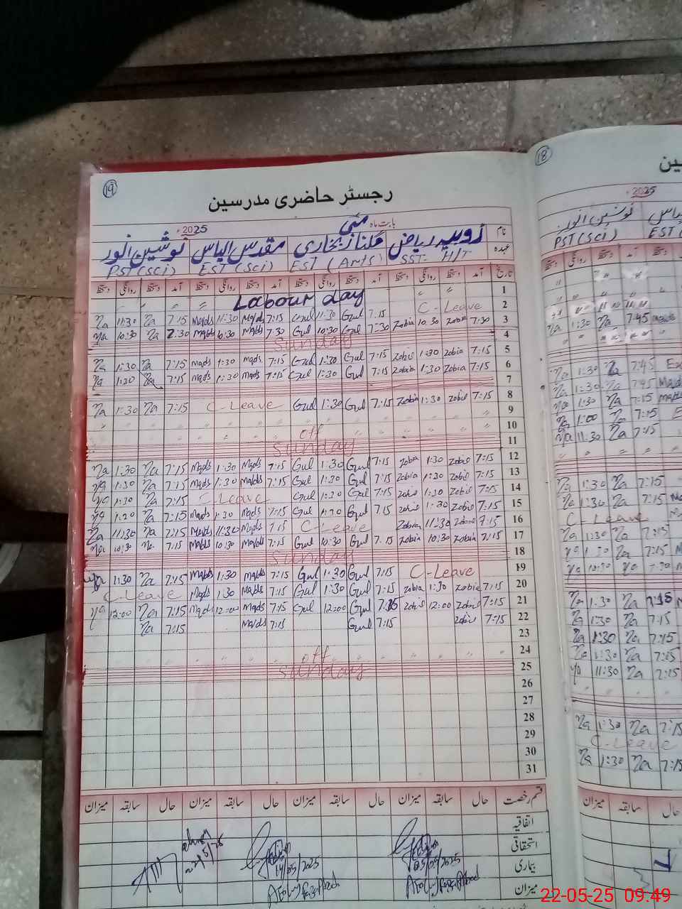 | CNIC | Full Name | Designation | R/C | Absence During Last Calender Month |