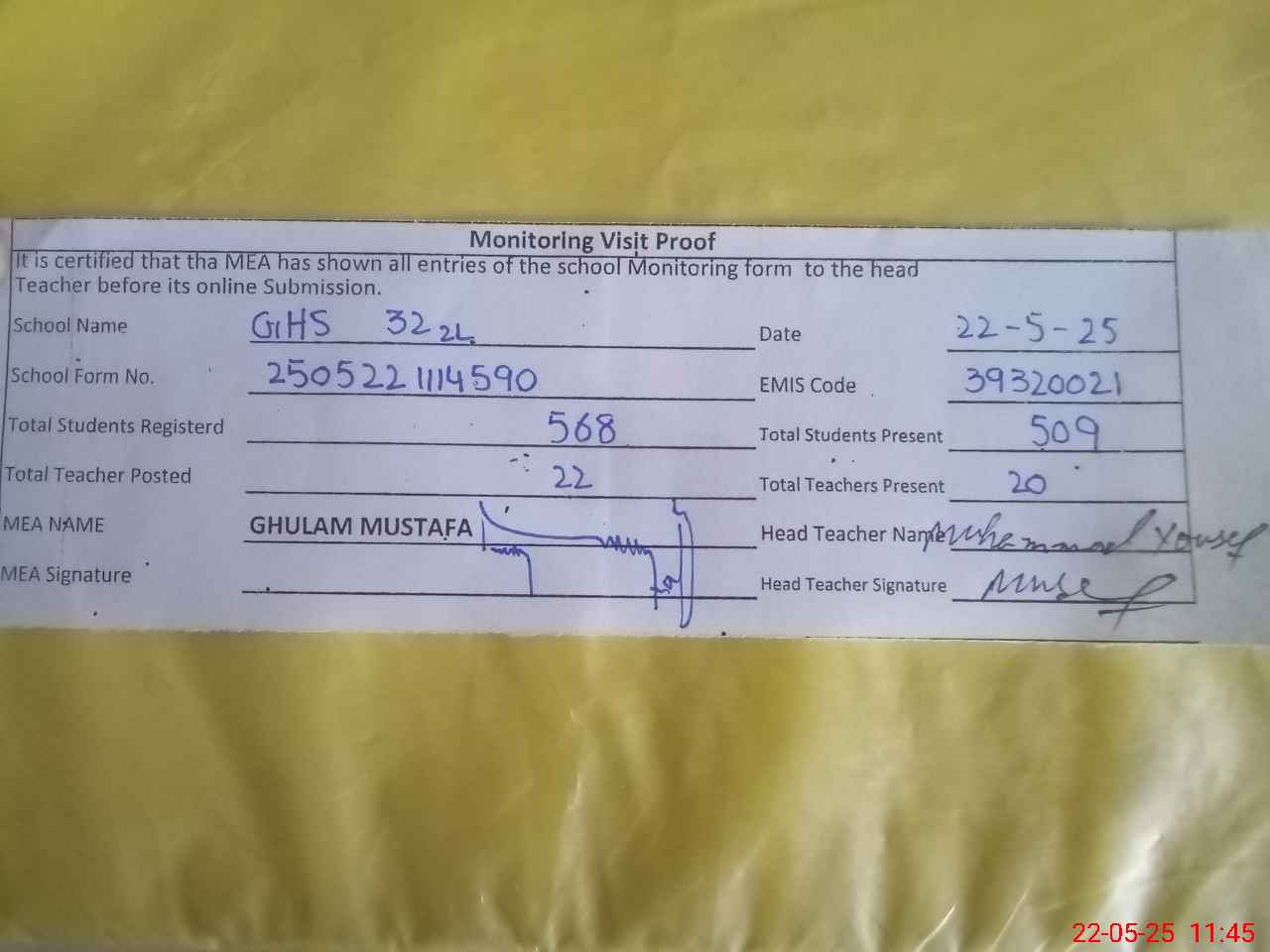 | EMIS Code: 39320021 | Name of School: GHS CHAK NO.32/2-L | |||