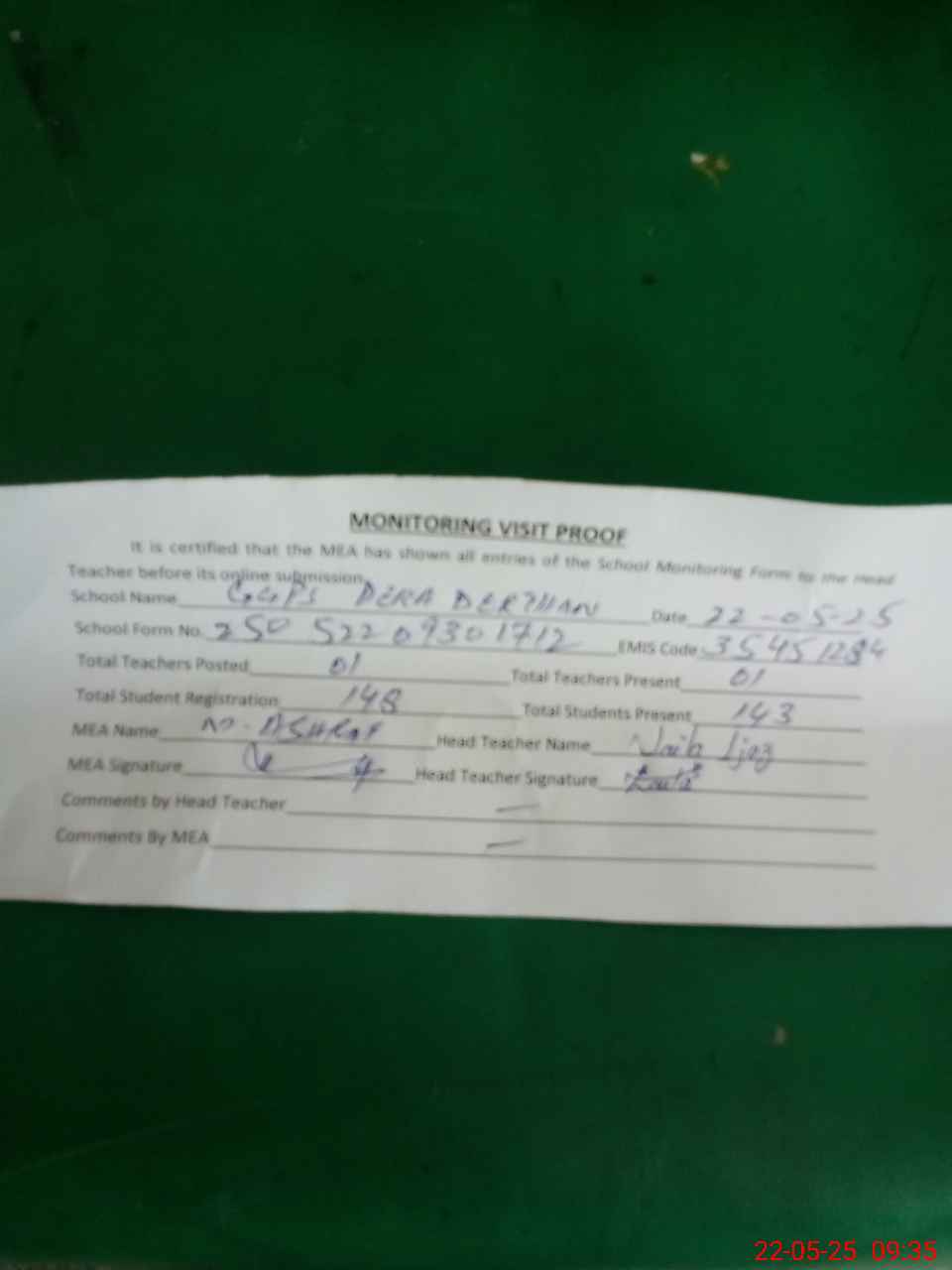 | EMIS Code: 35451284 | Name of School: GGPS DERA DHERTHAN | |||