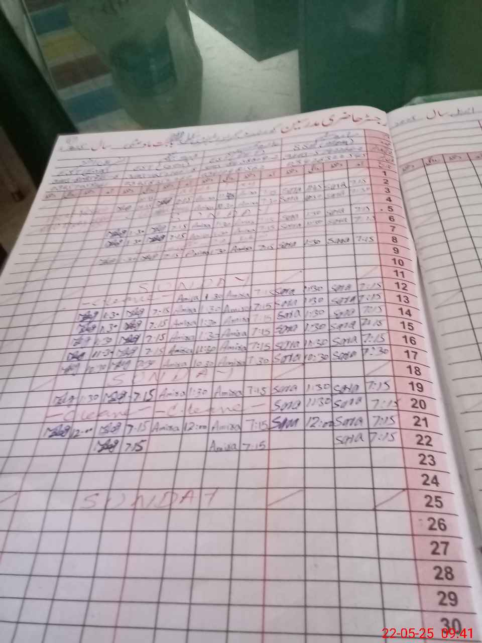 | CNIC | Full Name | Designation | R/C | Absence During Last Calender Month |