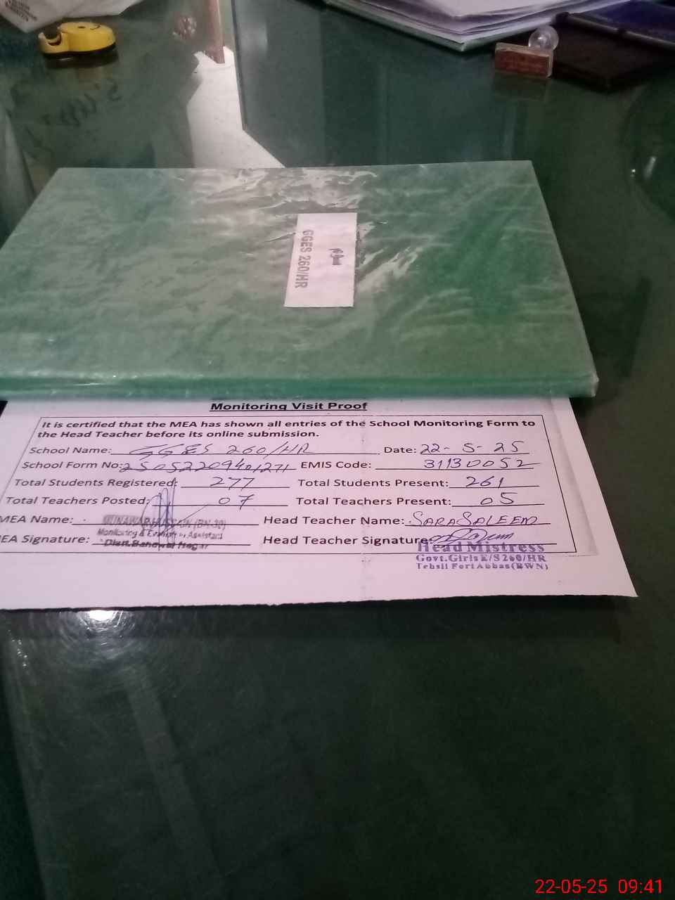 | Attendance Register | Head Teacher | MEA with School | Visit Proof |