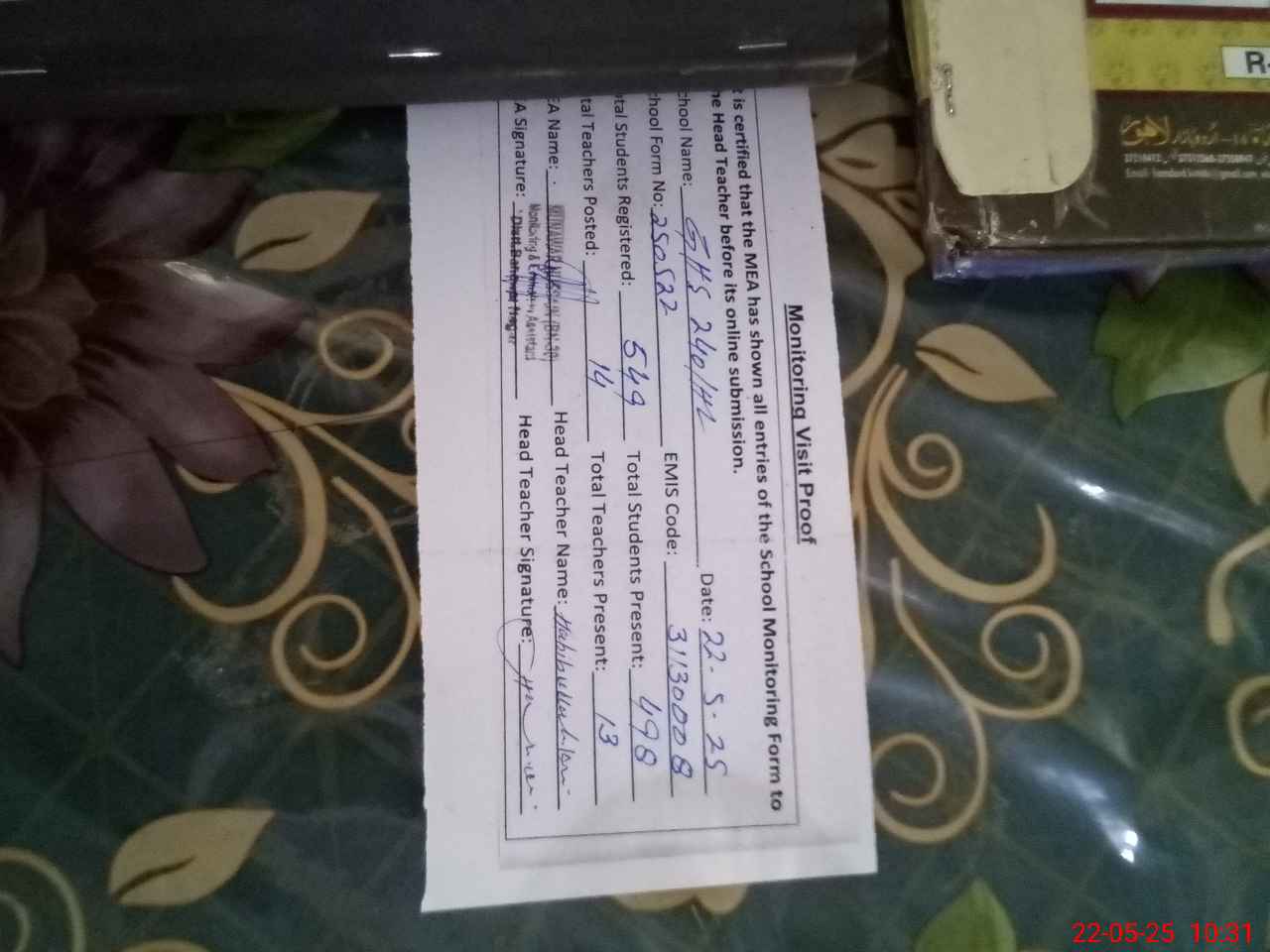 | Name: A.**** Designation: (School Headmaster's/Headmistress's) SST Phone/Cell Number: 03**** |