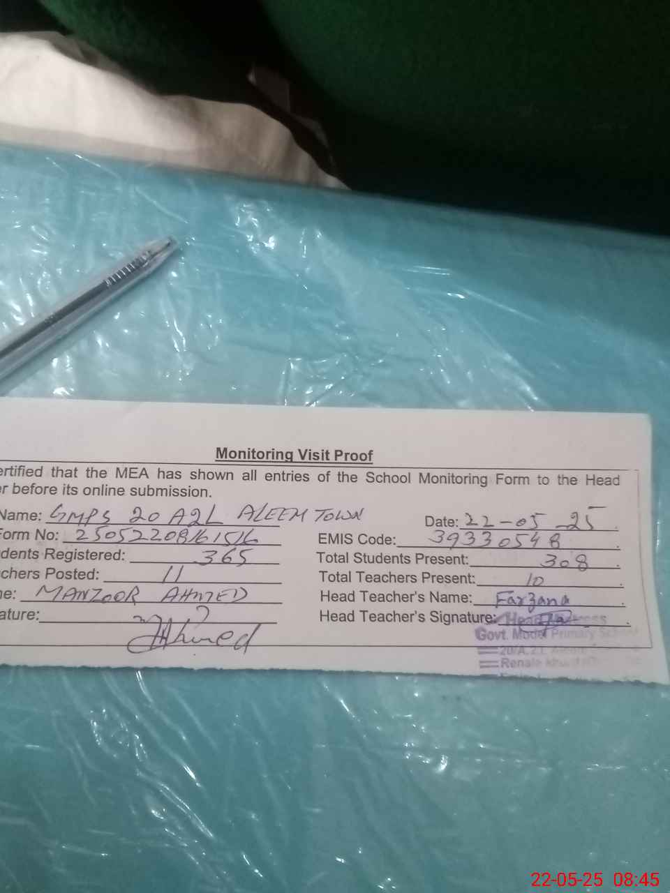 | EMIS Code: 39330548 | Name of School: GMPS 20 A-2L (ALEEM TOWN) | |||