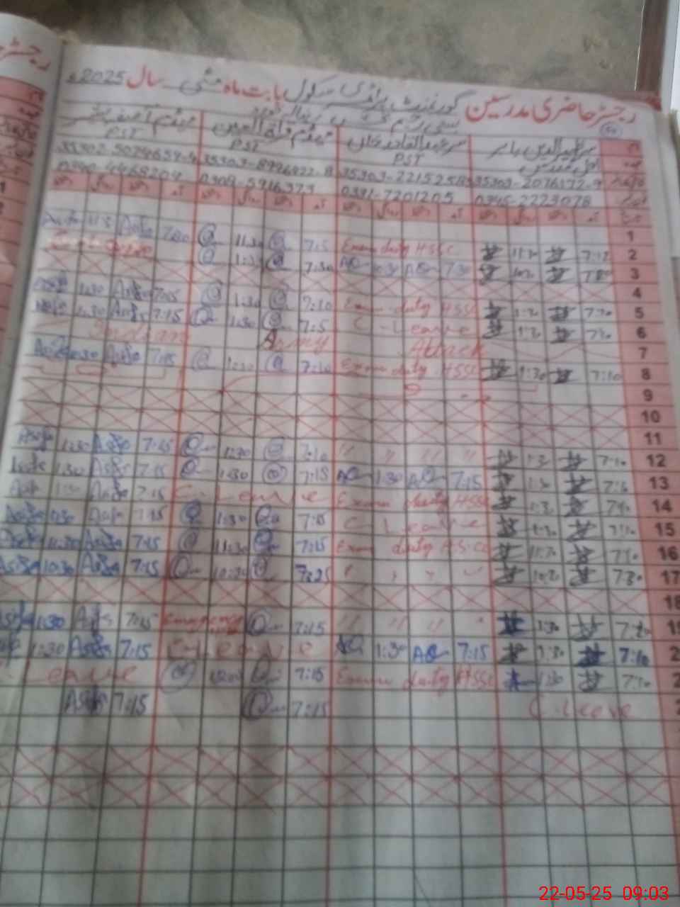 | 35**** | Ab**** Qa**** Kh**** | PST | Regular | 0 | 0 | 0 | 0 | 0 | 0 | 0 | 0 | 0 | Exam Duty |