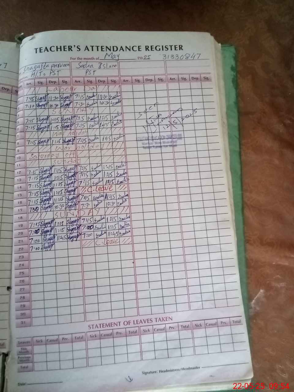 | 31**** | Sa**** Is**** | PST | Regular | 1 | 0 | 0 | 0 | 0 | 0 | 0 | 0 | 1 | Casual |