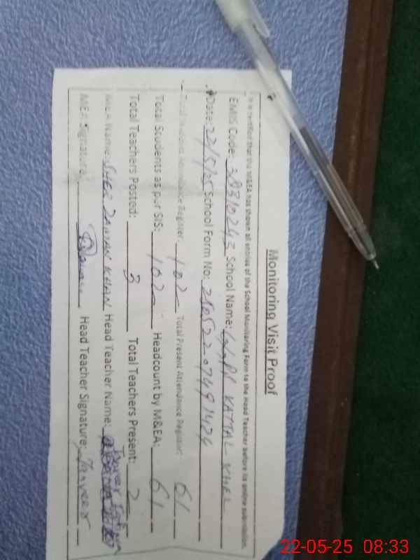 | Attendance Register | Head Teacher | MEA with School | Visit Proof |