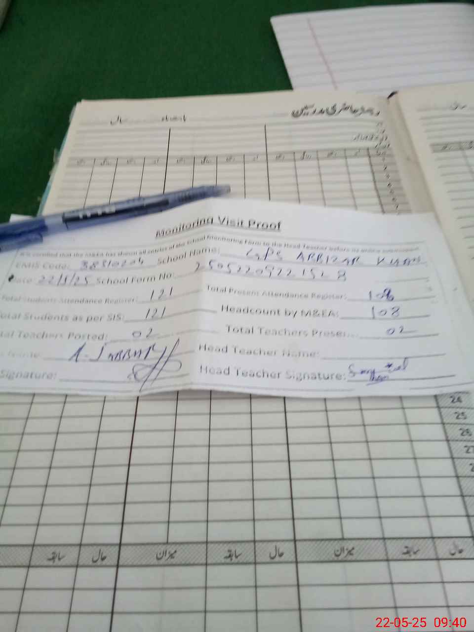 | Attendance Register | Head Teacher | MEA with School | Visit Proof |