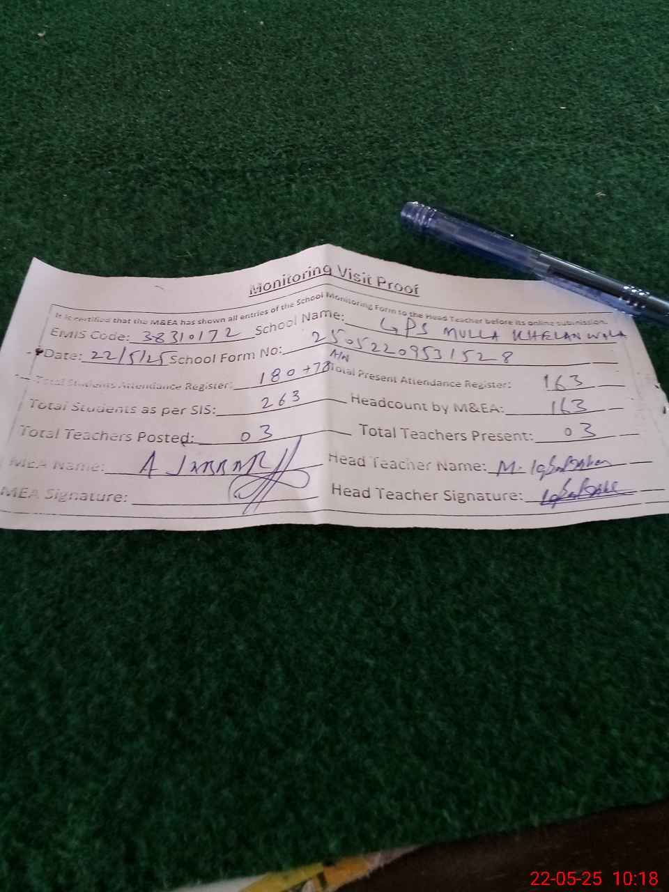 | EMIS Code: 38310172 | Name of School: GPS MULLA KHELAN WALA | |||