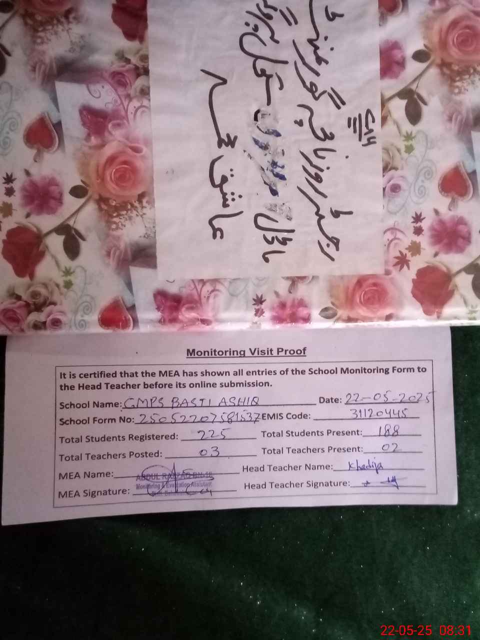 | EMIS Code: 31120445 | Name of School: GMPS BASTI ASHIQ MUHAMMAD | |||
