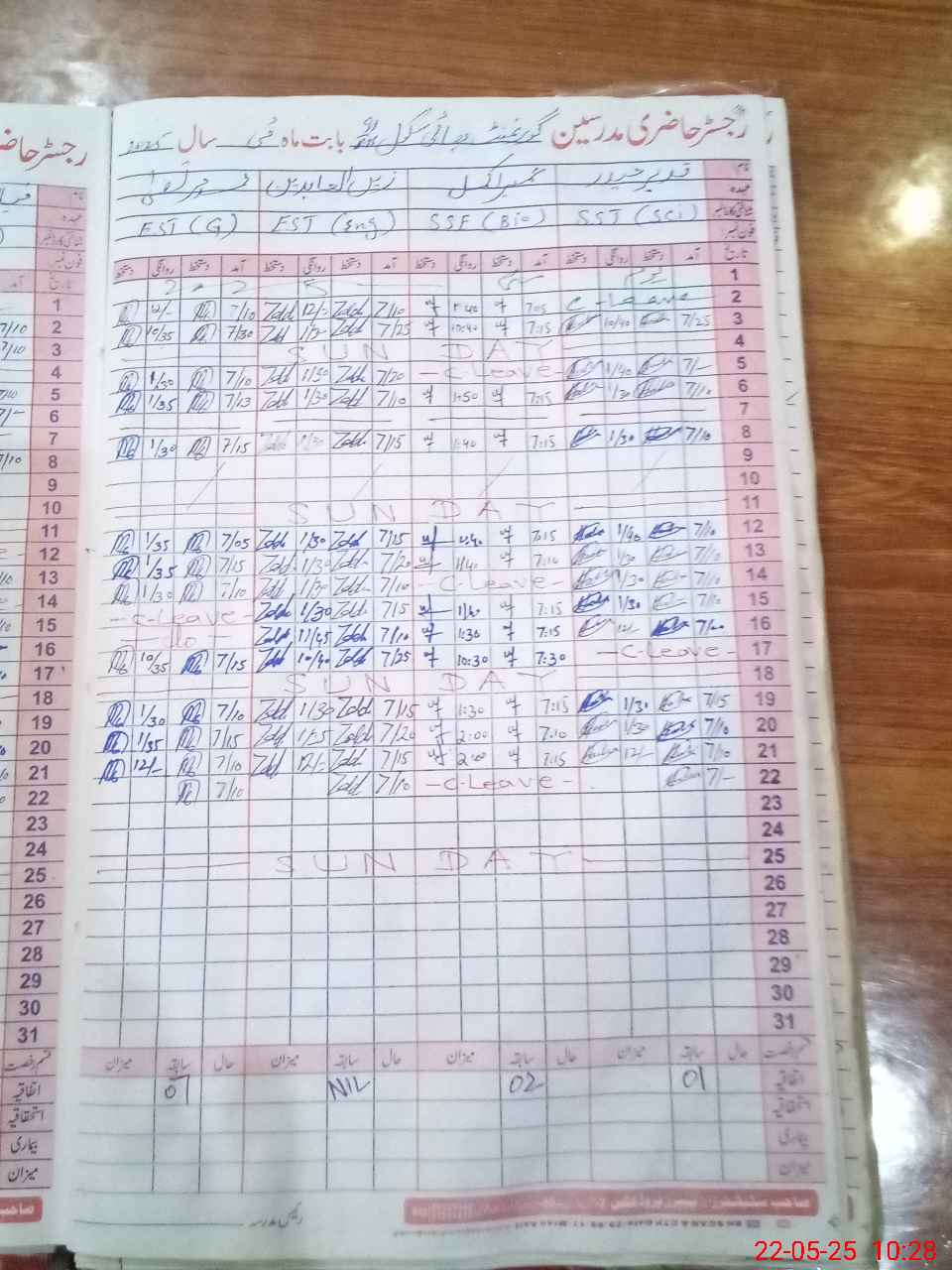 | CNIC | Full Name | Designation | R/C | Absence During Last Calender Month |