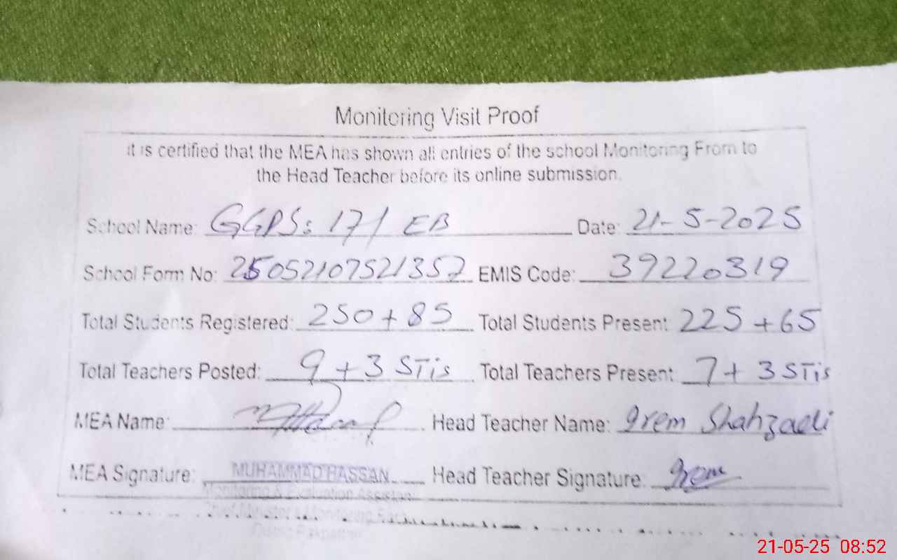 | EMIS Code: 39220319 | Name of School: GGES 17 EB | |||