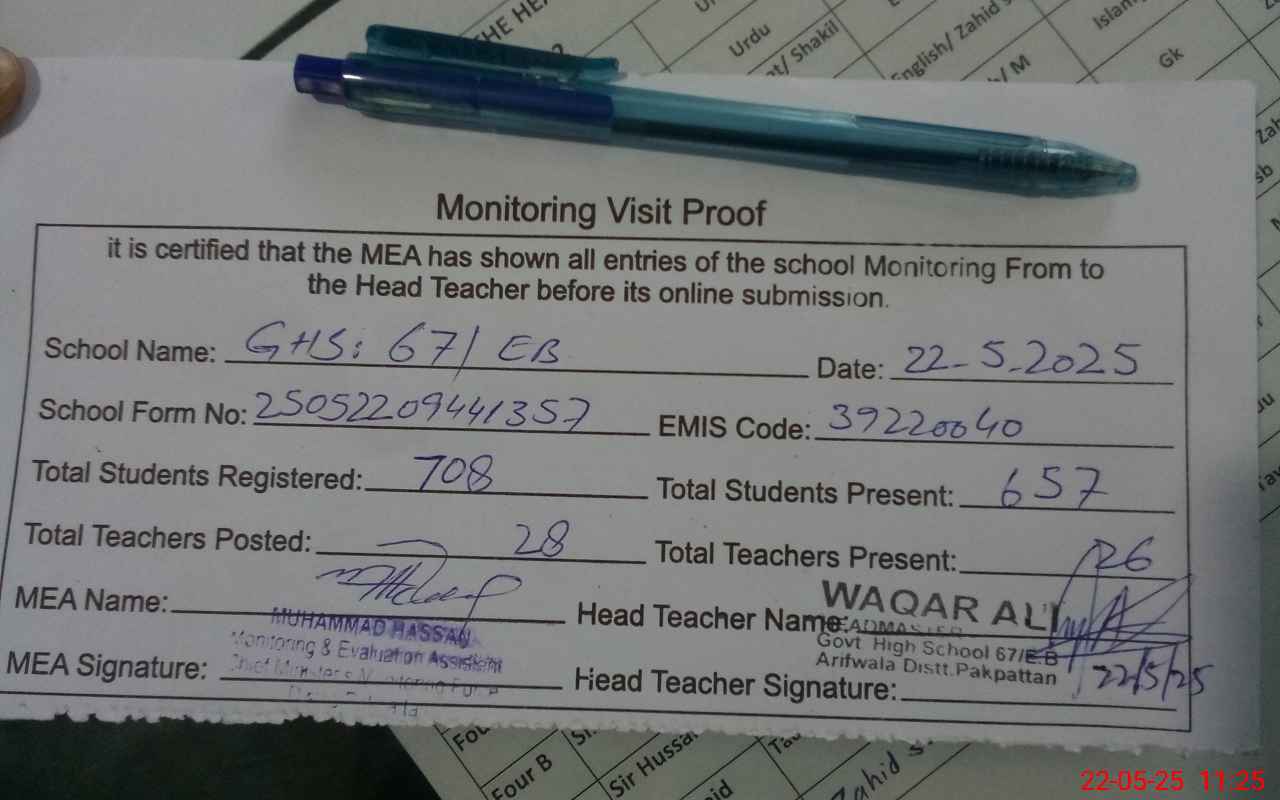 | EMIS Code: 39220040 | Name of School: GHS 67 EB | |||