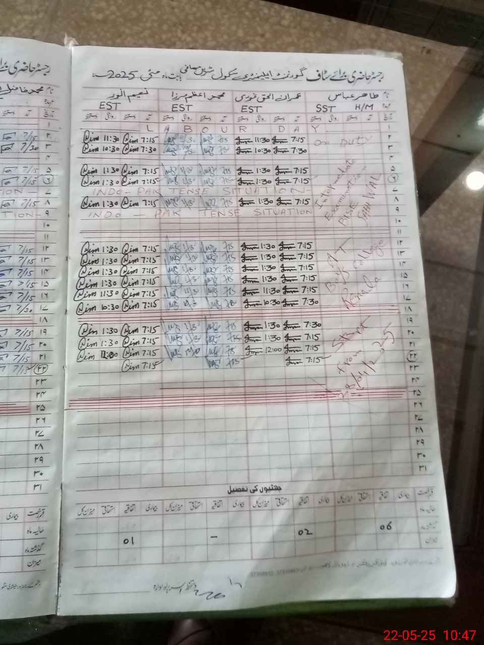 | 35**** | Ta**** Ab**** | SST | Regular | 0 | 0 | 0 | 0 | 0 | 0 | 0 | 0 | 0 | Exam Duty |