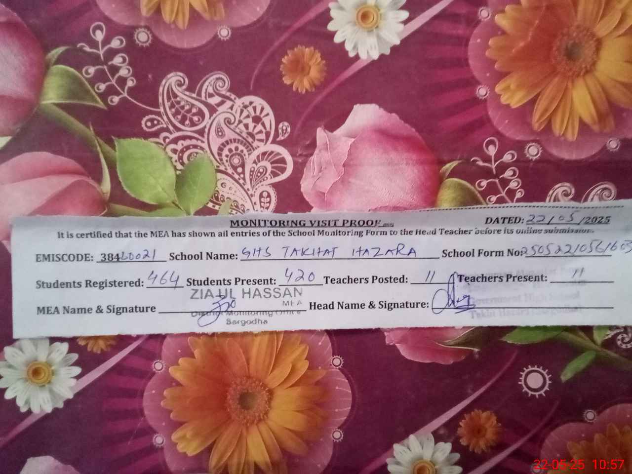 | EMIS Code: 38460021 | Name of School: GHS TAKHAT HAZARA | |||