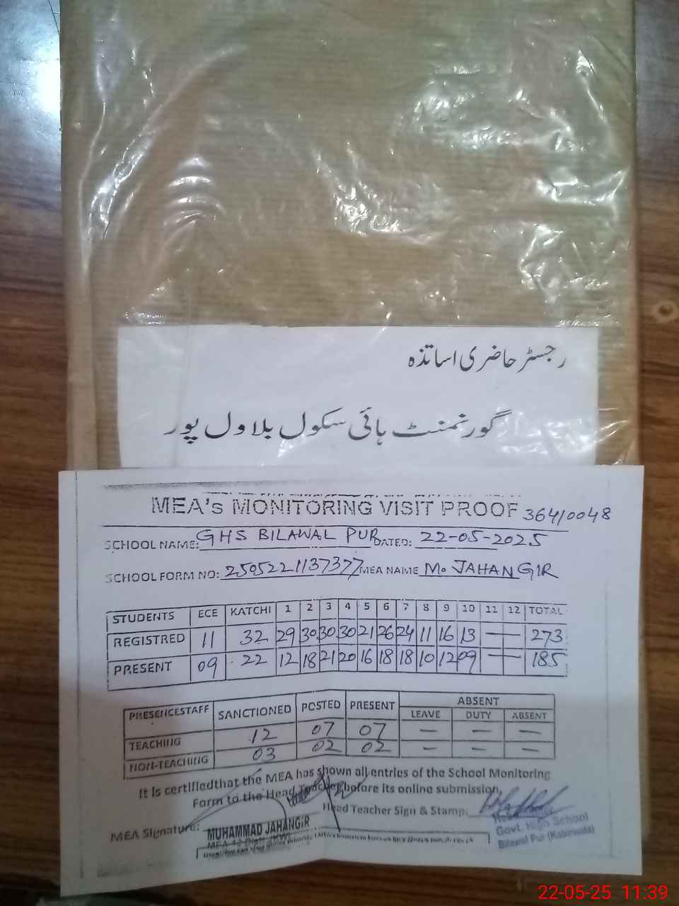 | EMIS Code: 36410048 | Name of School: GHS BILAWAL PUR, KABIRWALA | |||
