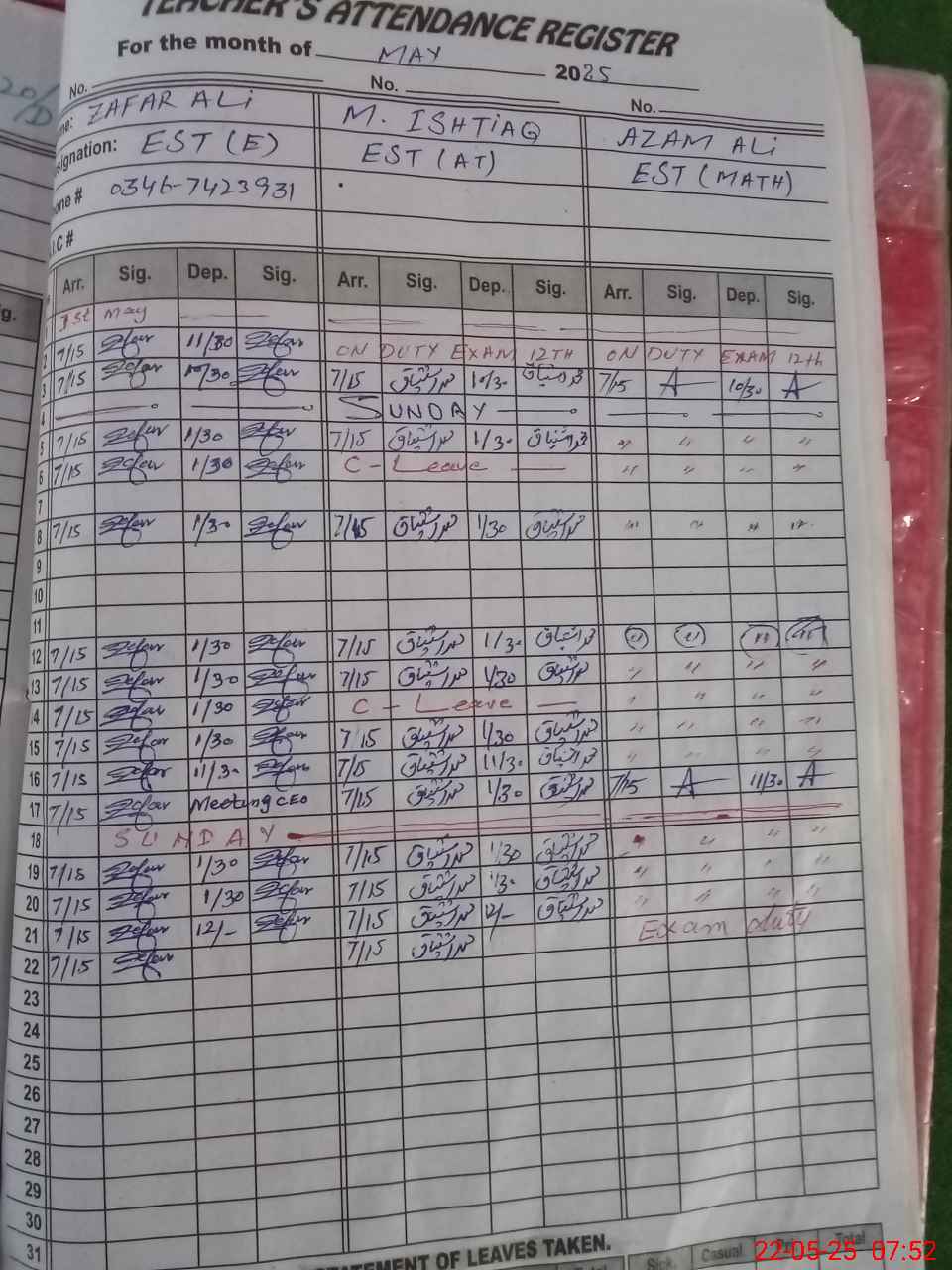 | 35**** | Az**** Al**** | Regular | 0 | 10 | 0 | 0 | 0 | 0 | 0 | 0 | 0 | Exam Duty | |