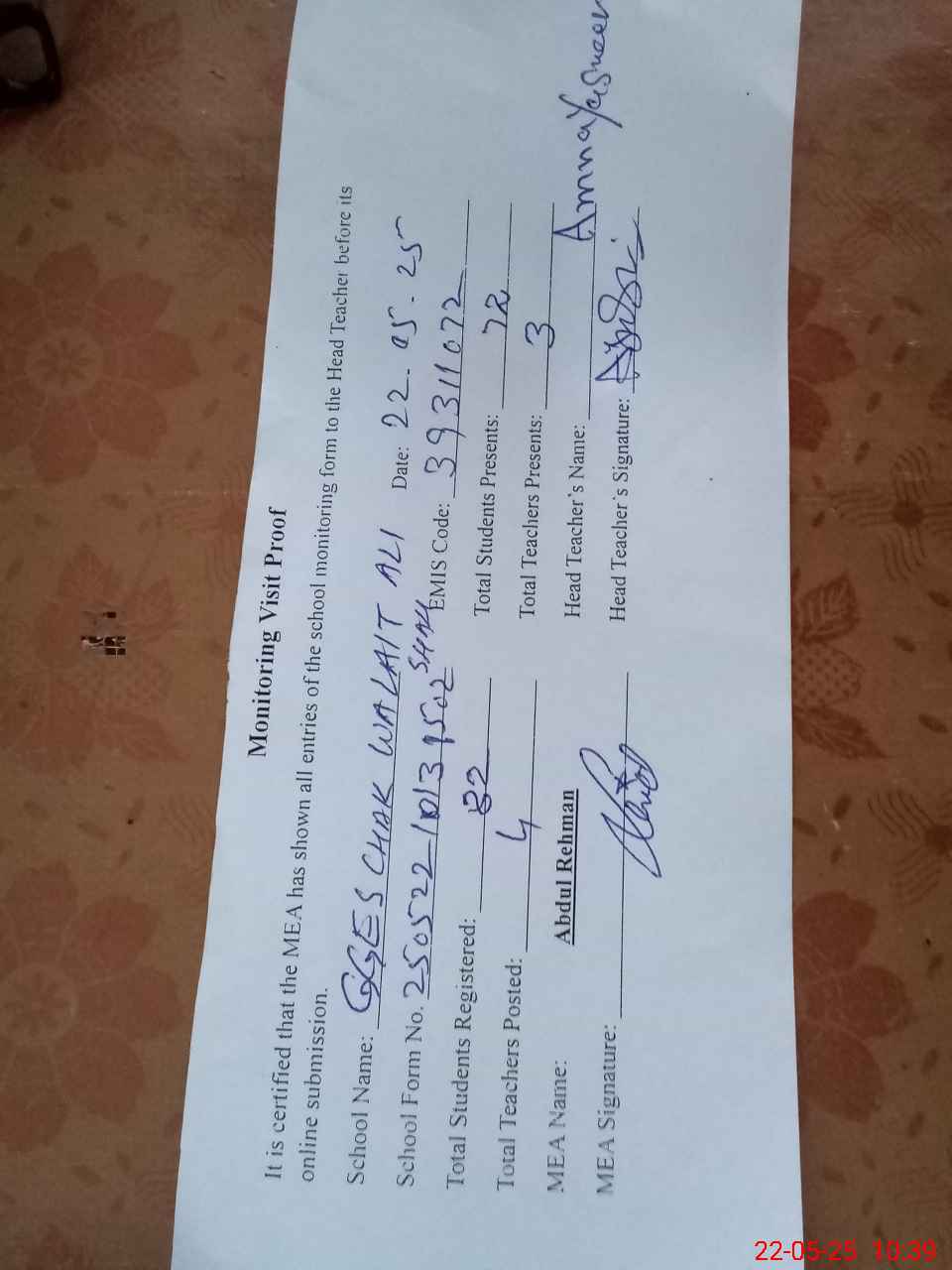 | EMIS Code: 39311072 | Name of School: GGES CHAK WALAIT ALI SHAH | |||