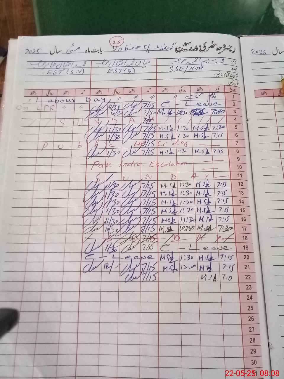 | CNIC | Full Name | Designation | R/C | Absence During Last Calender Month |