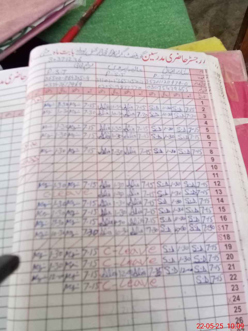 | CNIC | Full Name | Designation | R/C | Absence During Last Calender Month |