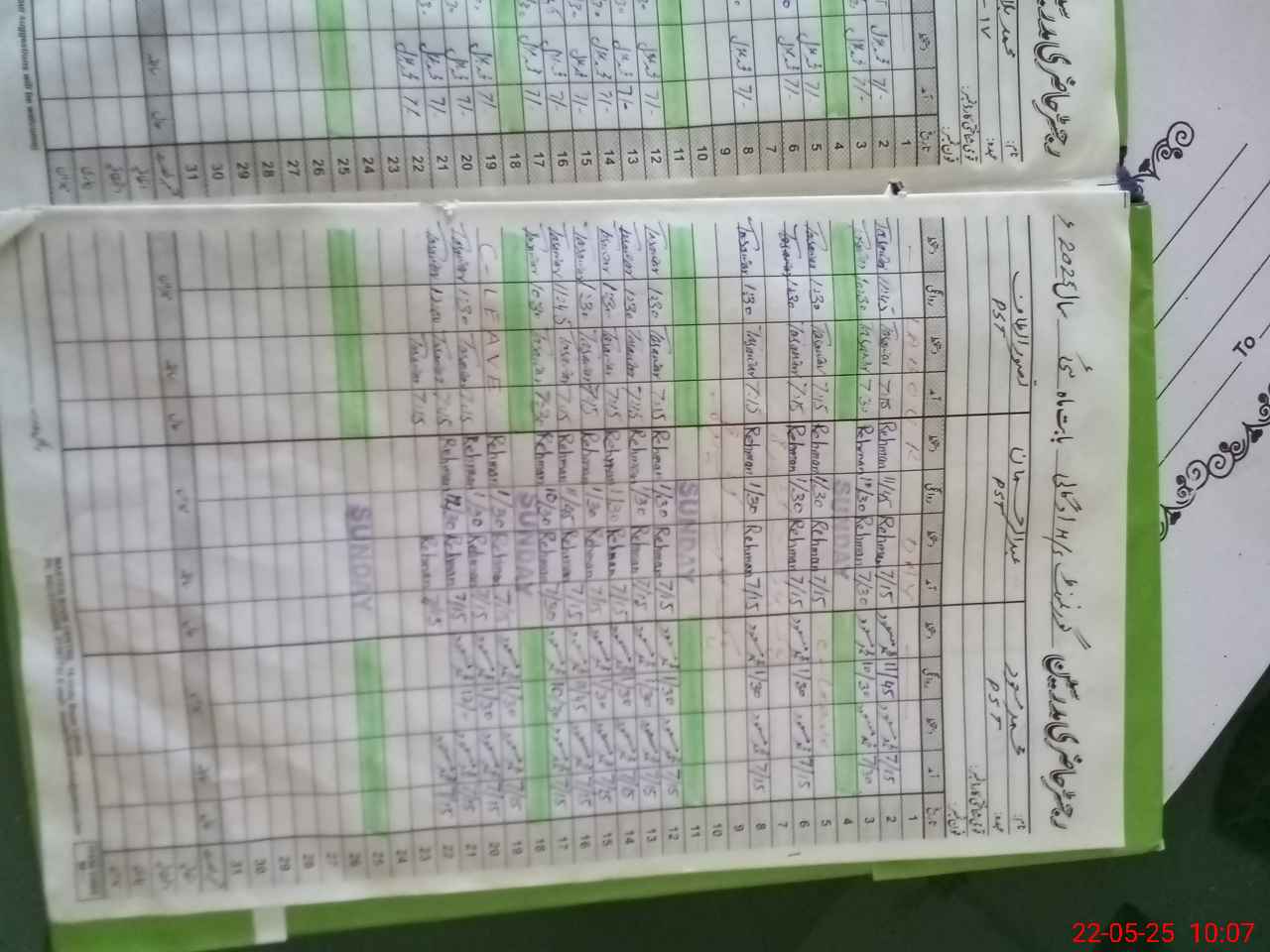 | CNIC | Full Name | Designation | R/C | Absence During Last Calender Month |