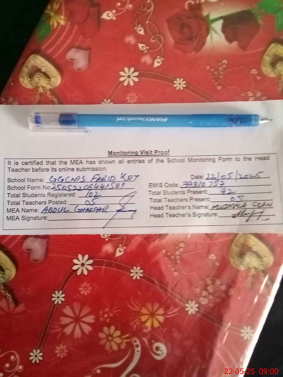 | EMIS Code: 39310757 | Name of School: GGCMS FAREED KOT | |||
